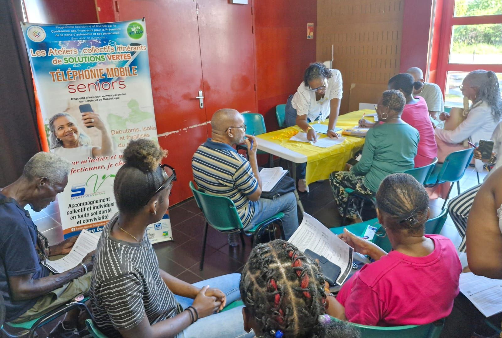 Depuis 2018, l’association Solutions vertes a initié la conception et la mise en œuvre du projet d’ateliers collectifs de téléphonie mobile sur le territoire de Guadeloupe, d’abord sur 10 communes, puis en 2019-2020 sur 32 communes. En 2021, nous avons réalisé ce programme sur les 32 communes de l’archipel à raison de 2 passages par commune.